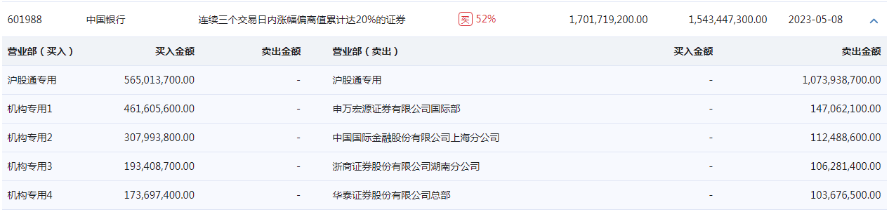 中国银行:近三日4家机构累计买入11.37亿元