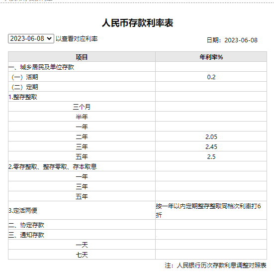 e公司讯,中国工商银行下调人民币活期存款利率,从0.25%下调至0.2%;下调两年期、三年期和五年期人民币定期存款利率至2.05%、2.45%、2.5%。