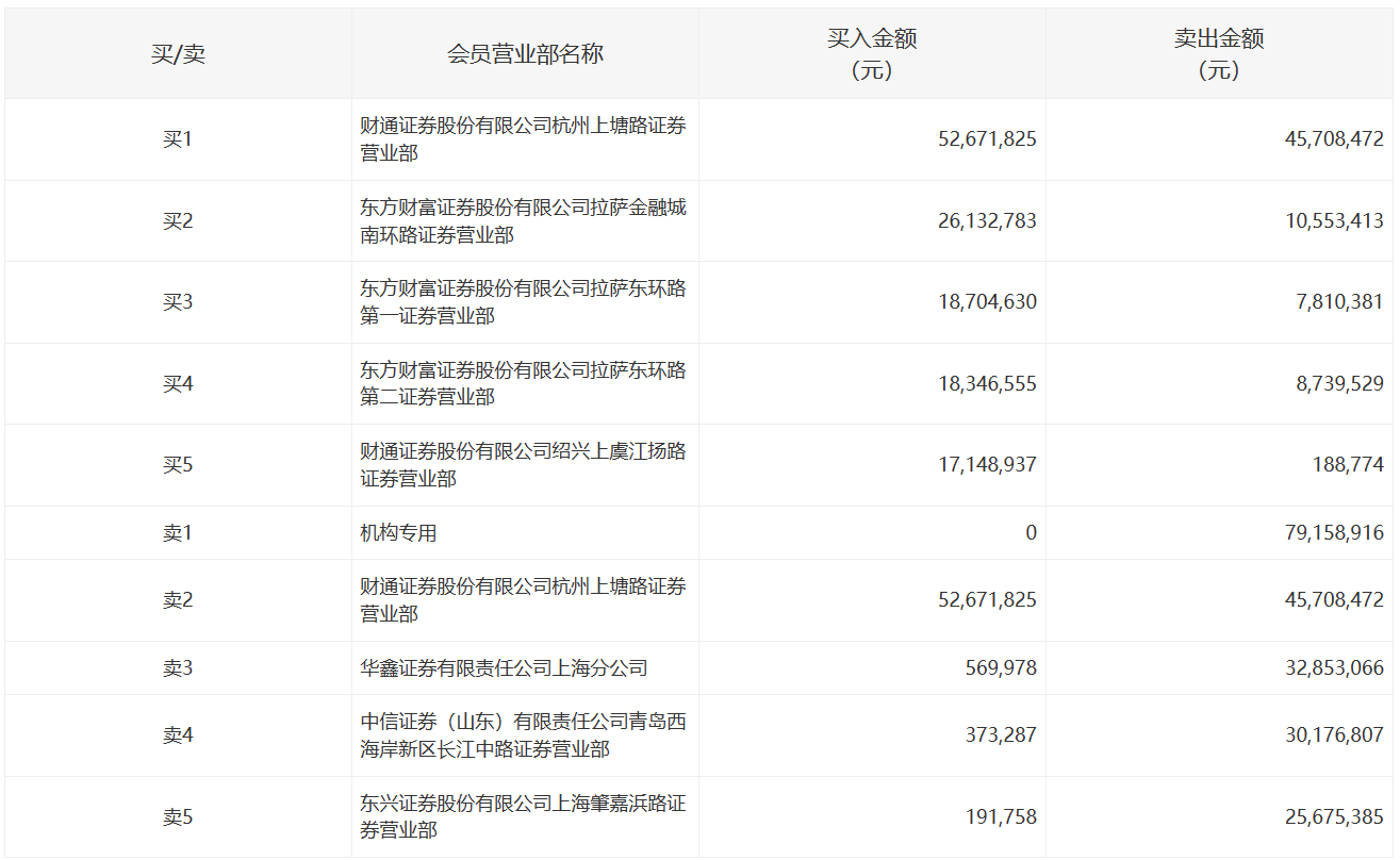 e公司讯,日久光电(003015)今日上演“地天板”,成交额18.59亿元,换手率50.56%。盘后龙虎榜数据显示,一机构净卖出7915.89万元,财通证券杭州上塘路证券营业部买入5267.18万元并卖出4570.85万元。