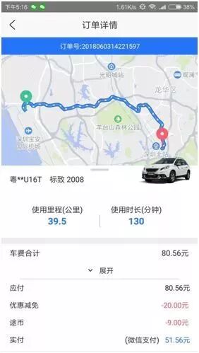 深圳的途歌用户吴先生向证券时报记者提供的途歌用车纪录显示,2018年6月,从深圳龙华区深圳北站开往宝安区机场附近,总共使用里程为39.5公里,车费合计80.56元,途歌给用户补贴20元,途币支付9元,该用户只需支付51.56元。而同样的路线,使用滴滴快车费用则超过100元。
