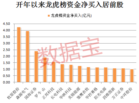 作为市场最活跃的资金方之一,游资席位和机构席位资金近期也没闲着。数据宝统计显示,开年以来龙虎榜资金累计成交1462.56亿元,其中机构专用席位累计成交95.3亿元,沪深股通专用席位累计成交54.54亿元,营业部席位累计成交1312.72亿元。