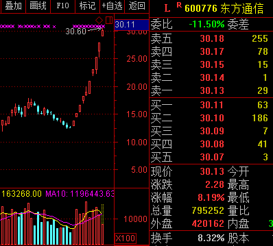 妖股之王东方通信今日早盘再度飙涨,盘中一度逼近涨停,盘中最高价已经创下历史新高。从龙虎榜资金来看,一线游资华泰证券深圳益田路荣超商务中心营业部、中国银河证券绍兴营业部、海通证券蚌埠中荣街营业部曾相继参与。