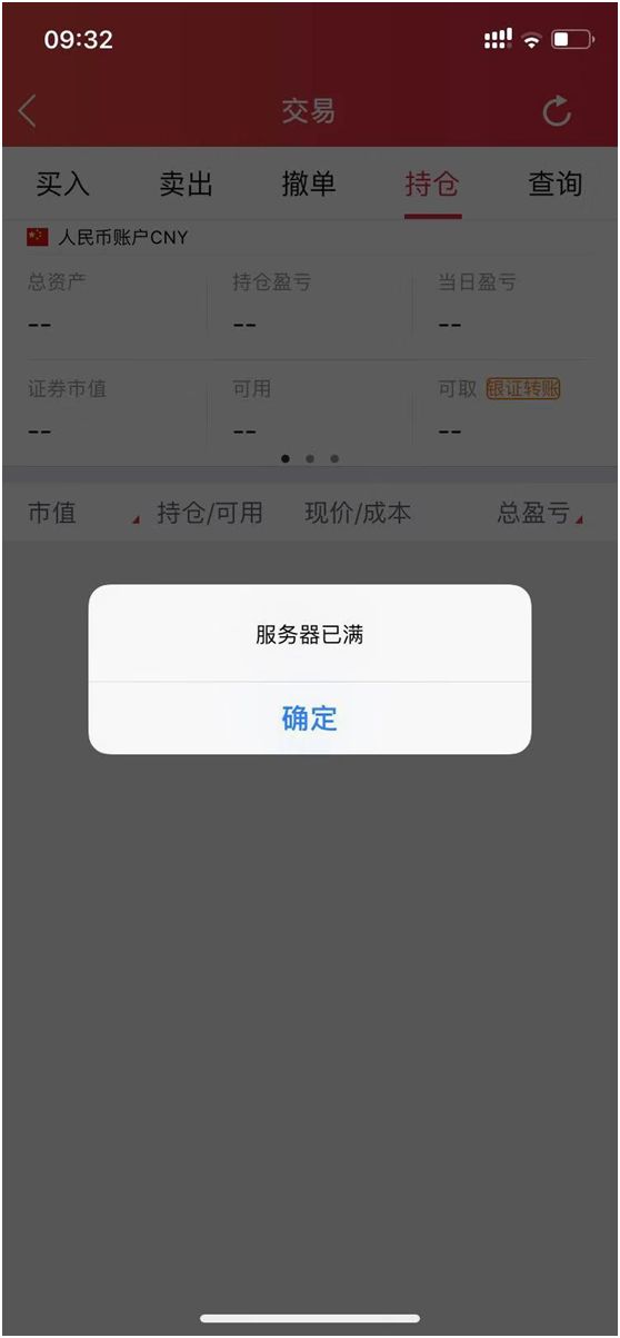 今日早间,有部分券商用户反映服务器崩溃,并配上截图,截图显示“服务器已满”,目前尚不确定是否和行情过于火爆、用户交易需求大增有关。