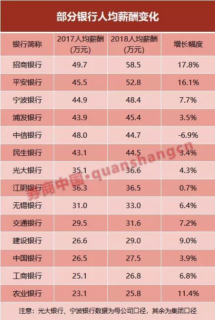 (原标题:整体上涨!2018银行业薪酬大曝光!招商、宁波、平安3家增最多,人均薪酬也最高,这三类人才最抢手)