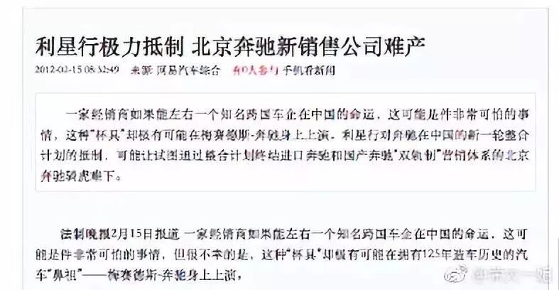 不要说一个区区的消费者了,之前北京奔驰想组建新销售公司,都因为利星行阻挠没做成。所以,这大概也是事情都发酵了两天,一个消费品企业,对如此损害品牌的事件居然迟迟不表态的原因之一。