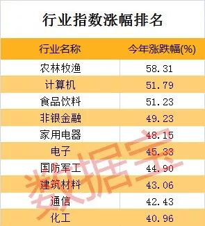 最新数据显示,农林牧渔指数年初至今累计涨幅58.31%,涨幅排名各大行业第一位。