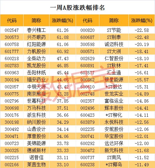 春兴精工夺得本周涨幅榜冠军