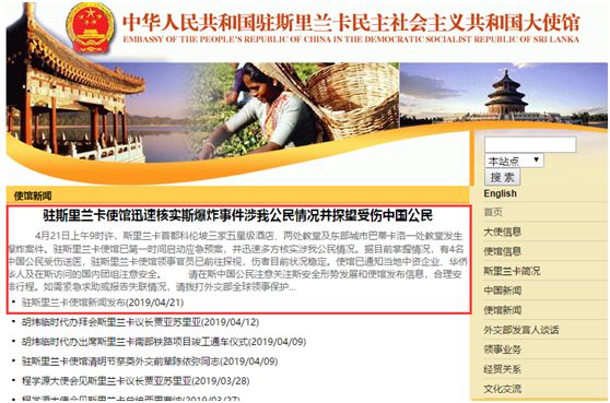 据中国驻斯里兰卡使馆新闻发布的消息,驻斯里兰卡使馆已第一时间启动应急预案,通知当地中资企业、华侨华人及在斯访问的国内团组注意安全。据目前掌握情况,已有4名中国公民受中轻度伤送医,使馆领事官员已前往探视,伤者目前状况稳定。