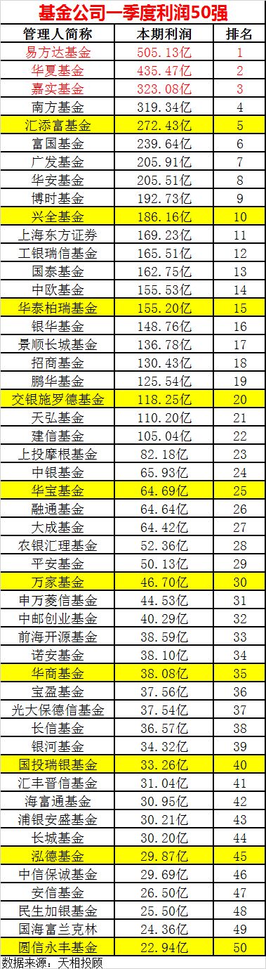 天相投顾数据显示,易方达以505.13亿元利润总额居首,易方达也是唯一一家利润超过500亿元的基金公司,华夏、嘉实基金则以435.47亿元、323.08亿元尾随其后。一季度利润超过200亿元的基金公司还有南方、汇添富、富国、广发等5家基金公司。