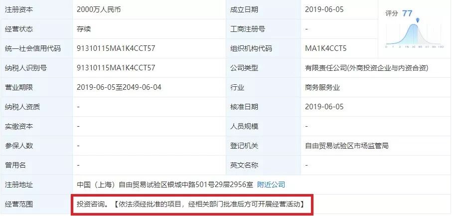 新合资公司的注册地在中国(上海)自由贸易试验区银城中路501号的上海中心大厦29层,上海中心大厦也是支付宝在上海的办公所在地。