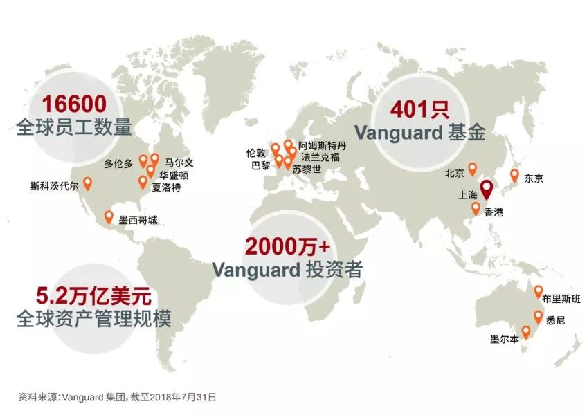 作为低成本管理和被动投资的代表性基金公司,Vanguard集团由成立时的近20亿美元资产管理规模,增长到如今的5.2万亿美元(约36万亿人民币)资产管理规模,是全球最大的公募基金和资产管理规模第二大的机构投资者,在成立时,公司即推出了标准普尔500指数基金,这也是全美国第一只向个人投资者推出的指数基金,目前规模是4000亿美元,是全世界最大的公募基金之一。
