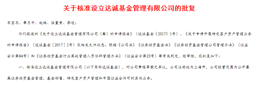 达诚基金获批