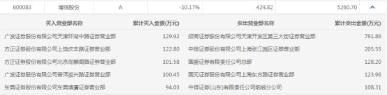 而买入前五分别为广发证券天津环湖中路证券营业部、方正证券上饶庆丰路证券营业部、方正证券北京佟麟阁路证券营业部、广发证券普洱振兴路证券营业部、东莞证券东莞塘厦证券营业部,但总体而言成交金额均不算太大,处于百万级别。