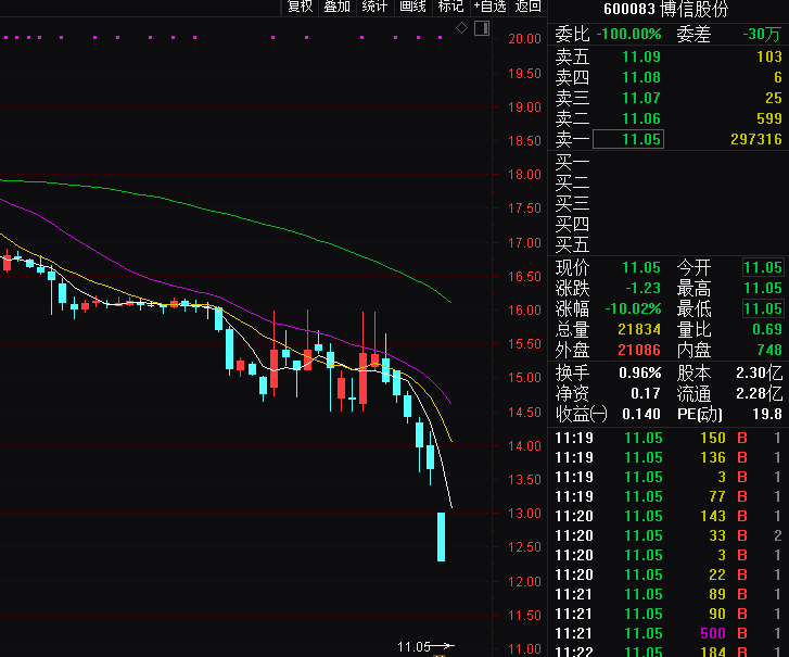 受此突发事件影响,7月8日,博信股份股价开盘一字跌停,延续7月5日跌停态势,截至午间收盘,仍有约30万手卖单封于跌停板,无一买单,成交仅2413万元。