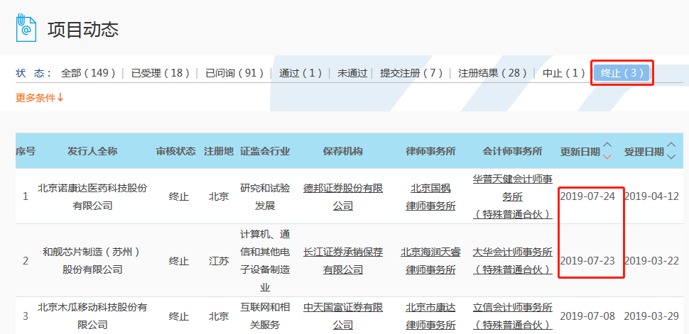 7月24日,上交所科创板项目动态版块显示,诺康达的审核状态变更为“终止”。与木瓜科技和和舰芯片不同,诺康达仅在5月8日进行了一轮问询回复,此后再无其他信息披露。
