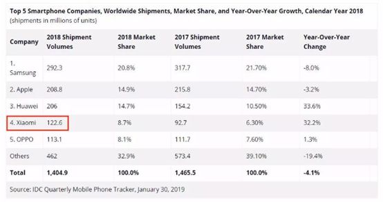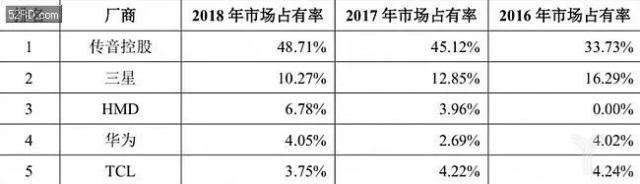 与2018年全球智能手机品牌相比,传音手机的出货量甚至略高于小米,排在全球三巨头三星、苹果、华为之后。