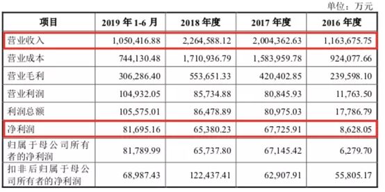 招股说明书显示,2019年上半年,公司营业收入规模突破百亿关口,达到105.04亿元,当期净利润8.17亿元。