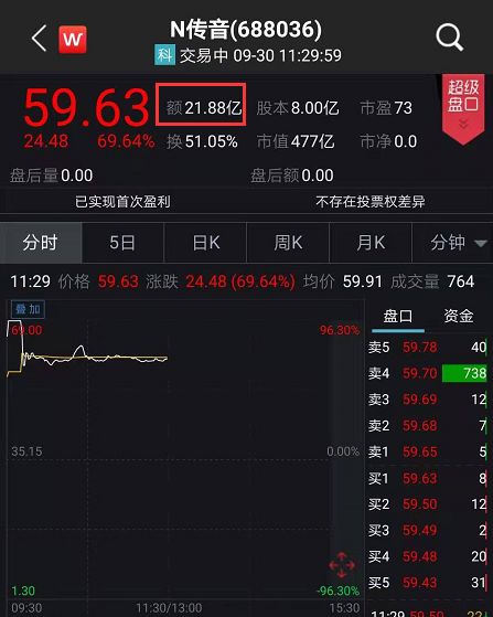 值得注意的是,传音控股的成交量是今天上市的三只科创板新股中最大的。截止早盘收盘,传音控股成交21.88亿元,换手率高达51%。