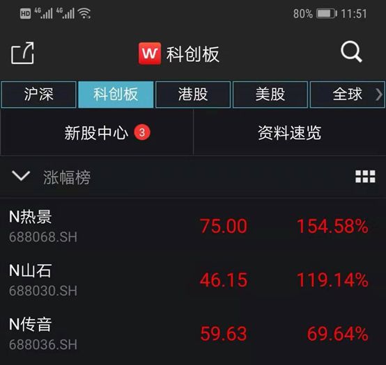 与此同时,作为科创板上难得的营收破百亿的上市公司,传音控股的涨幅仍然在今天的三只新股中垫底。热景生物盘前高开近200%,目前回落至154.58%。
