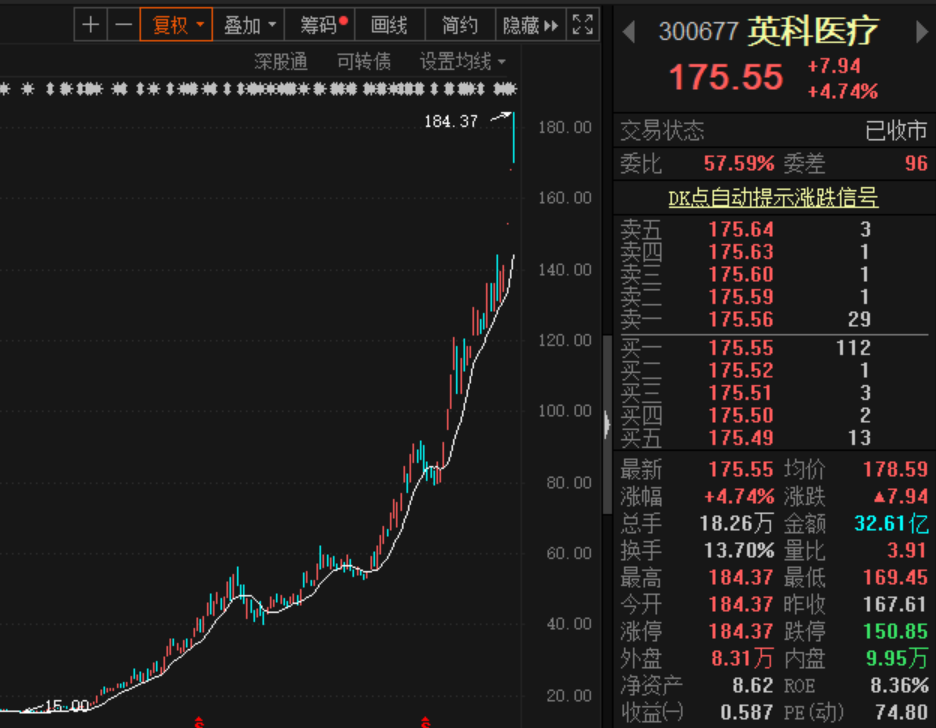 周三另一只引人注目的个股是英科医疗,其为年内首只10倍股(除新股)。2019年12月31日英科医疗报收16.59元,周三英科医疗以涨停184.37元开盘,最大涨幅逾1011%。