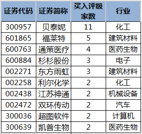 e公司讯,统计显示,60只个股今日获机构买入型评级。其中,贝泰妮关注度最高,共获11次机构买入型评级记录。从机构评级变动看,今日机构买入型评级记录中,有17条评级记录为机构首次关注,涉及铂科新材、长安汽车等17只个股。